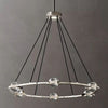The collection features lighted crystal orbs, suspended in hexagonal fittings within a flat metal frame. The design was inspired by plans for the cenotaph of Sir Isaac Newton drawn by 18th-century architect Etienne Louis Boullée, a visionary ode to physics reinterpreted in a stunning contemporary form.