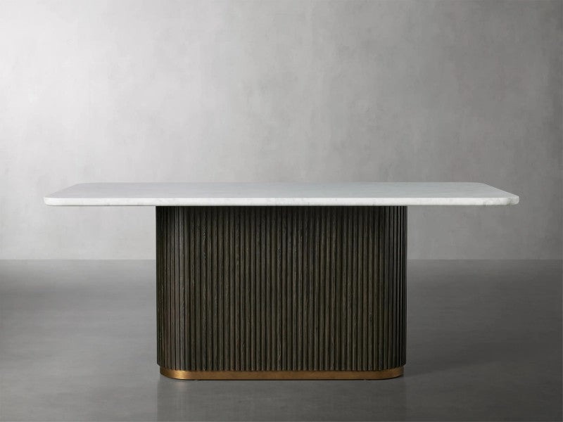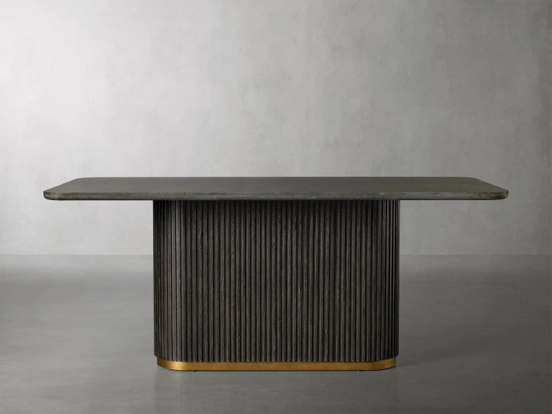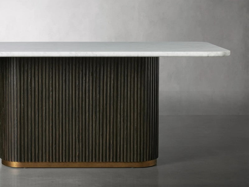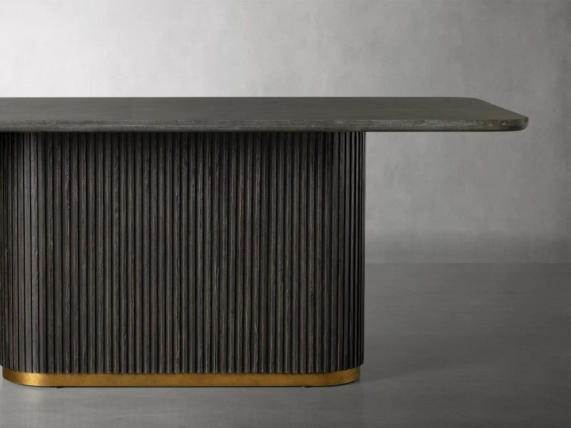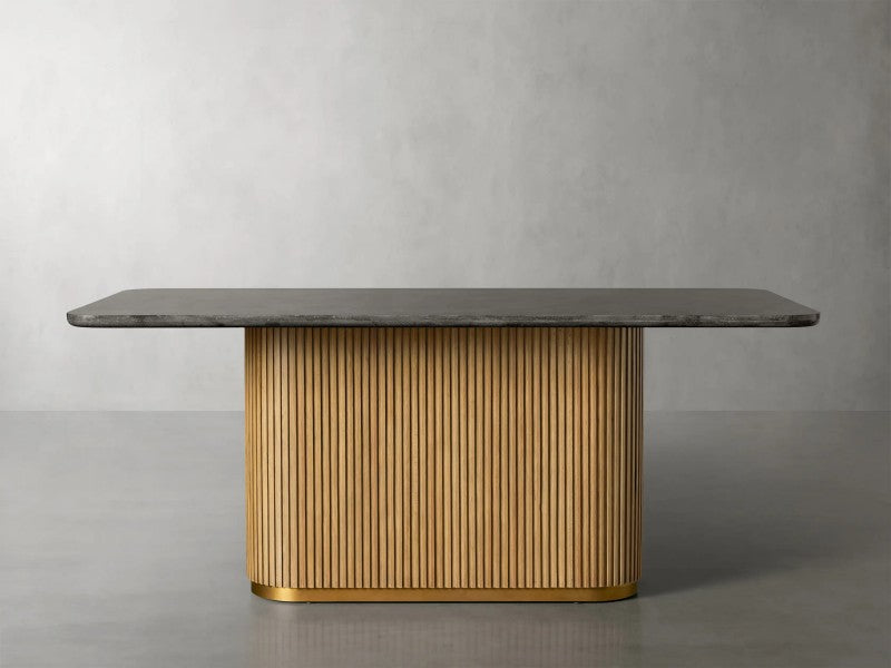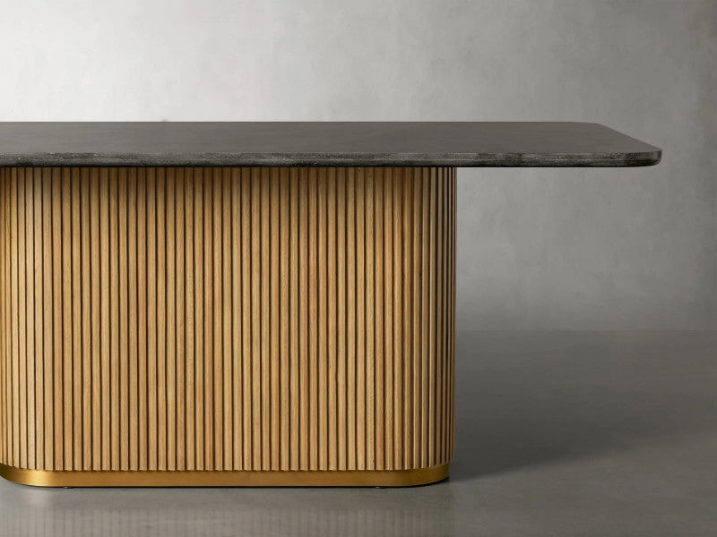 Our Chateau Collection showcases a stunning mixed-material design, inviting elevated style into any room in your home. Hand-finished pine from Finland is luxuriously complemented by a stone top, accented by light brass plinth bases and reeded oak detailing. The result is an eclectic-yet-chic collection that easily fits into any aesthetic.
