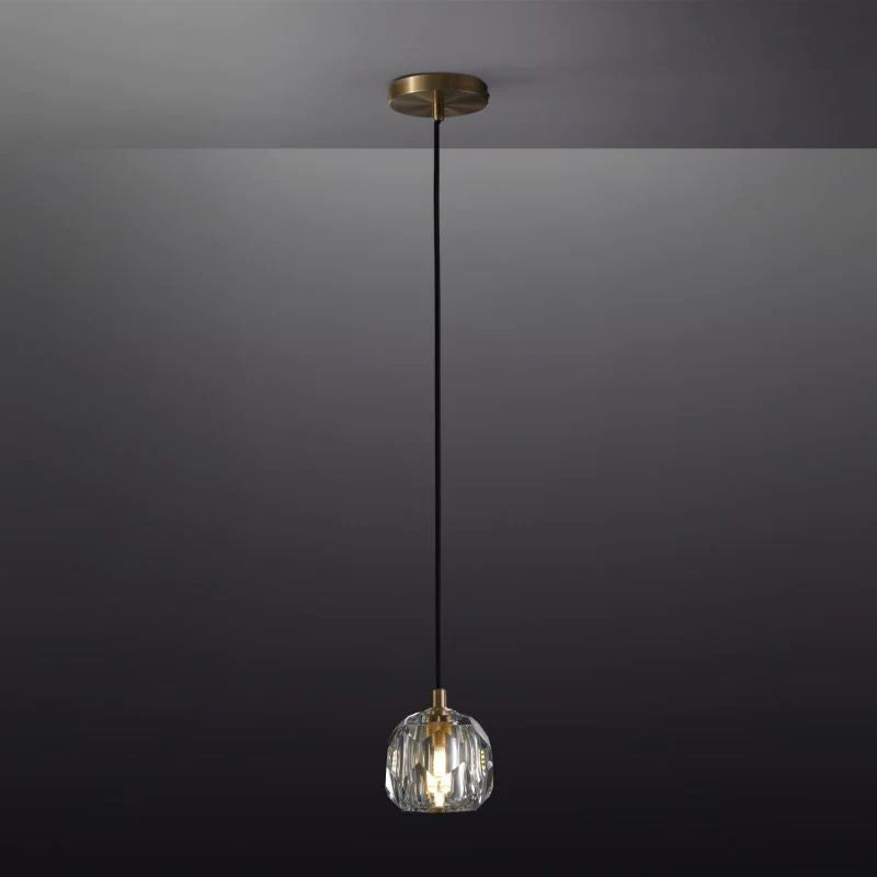 The collection crafted of solid brass and crystal glass, for luxe materials and superior craftsmanship, each finely faceted sphere is ground and polished by hand to reflect and refract the light.
