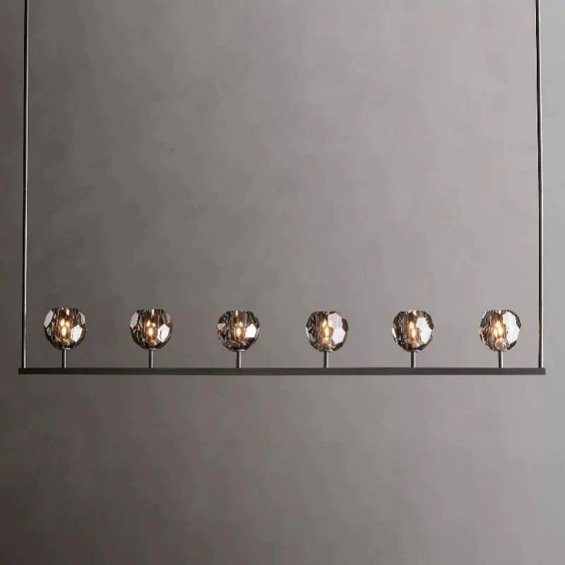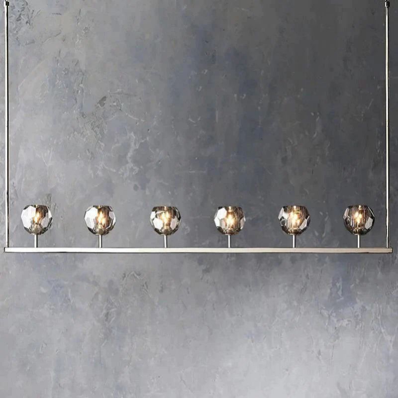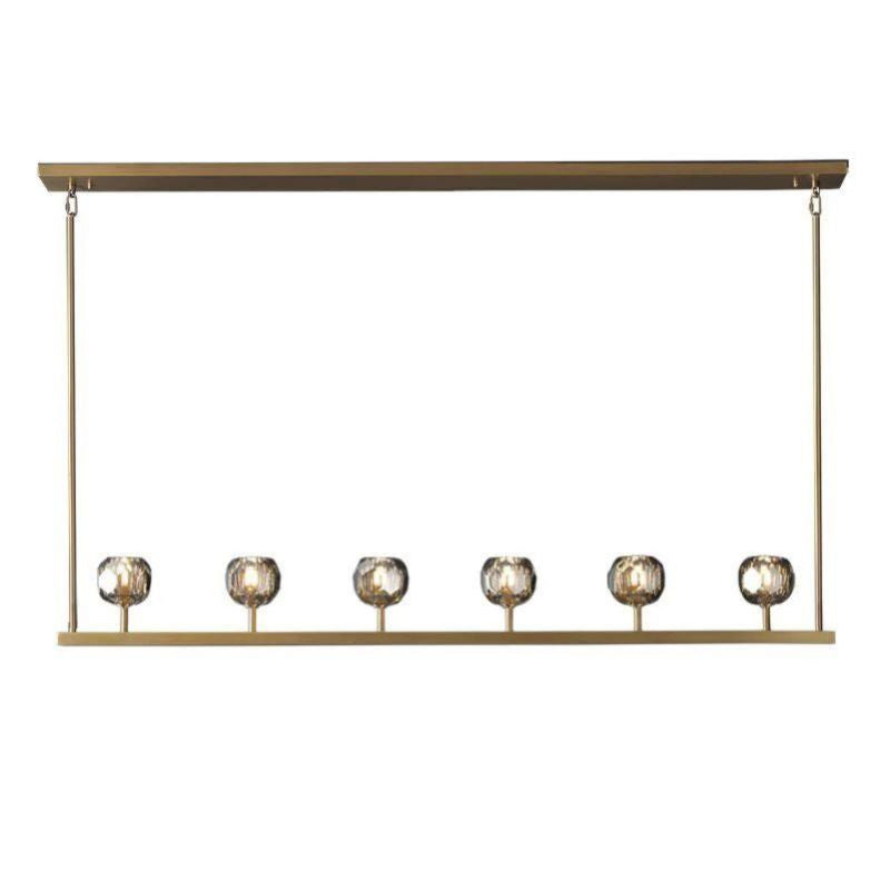 The collection crafted of solid brass and crystal glass, for luxe materials and superior craftsmanship, each finely faceted sphere is ground and polished by hand to reflect and refract the light.