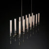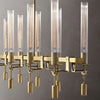 Made of solid brass, the collection's minimalist construction features Edison bulbs set in cylindrical ribbed glass that shine like candles.
