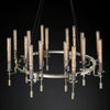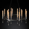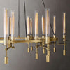 Made of solid brass, the collection's minimalist construction features Edison bulbs set in cylindrical ribbed glass that shine like candles.