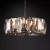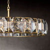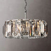 Inspired by the German chandeliers of the 1970s, our fixtures evoke the boldness and glamour of that era. Using a circle of faceted crystal glass prisms to reflect and refract light, the designer captures the essence of an emerald-cut diamond.