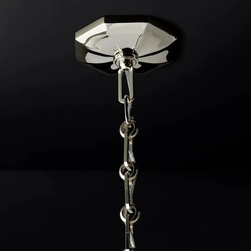 In this collection, the designer has paired ultra-clear glass with a solid brass frame. The crystal refracts light inward and outward, making your living room or dinning room even more gorgeous and dynamic.