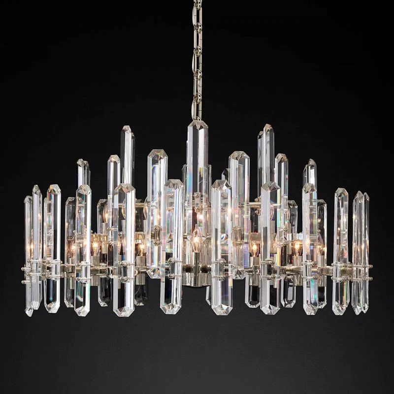 In this collection, the designer has paired ultra-clear glass with a solid brass frame. The crystal refracts light inward and outward, making your living room or dinning room even more gorgeous and dynamic.