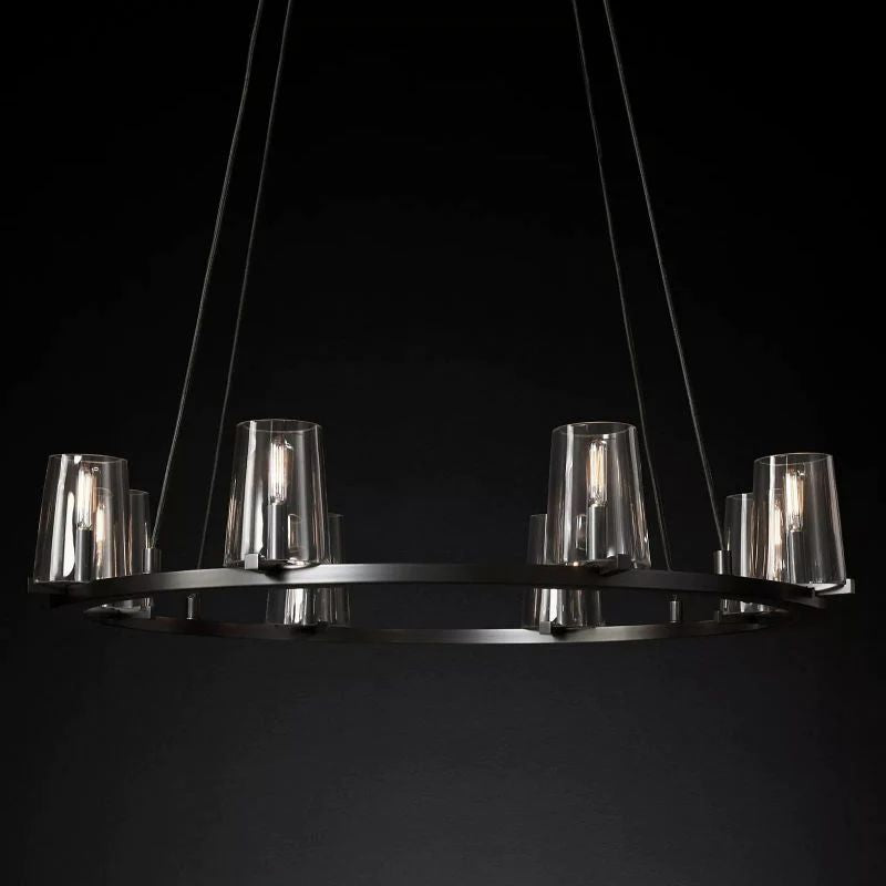 The tapered shade rests lightly on a hand-forged iron base, creating a contrast of mass and air, rusticity and sophistication that makes the home more modern and welcoming.