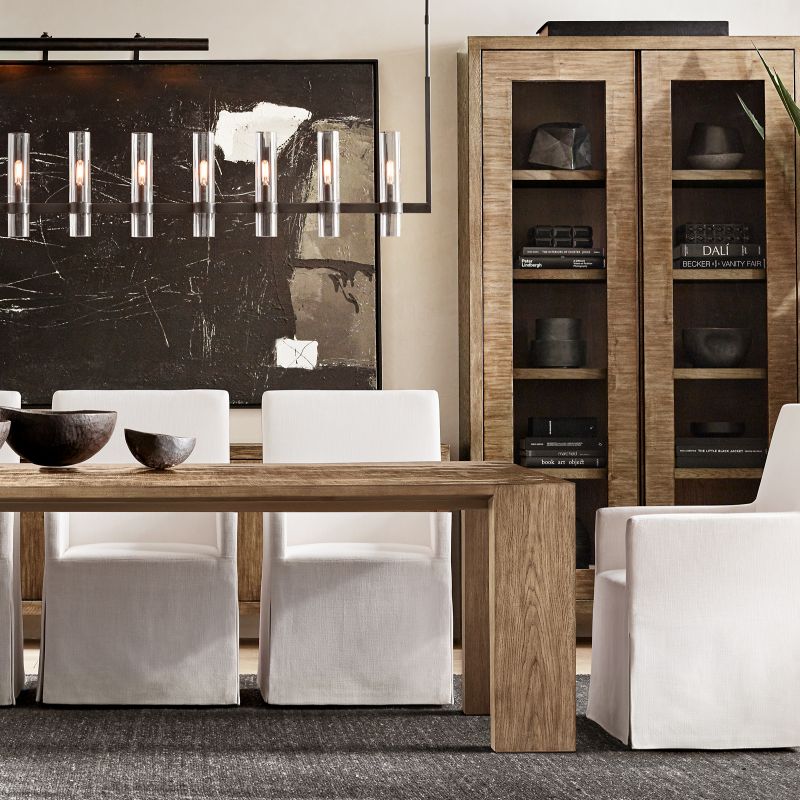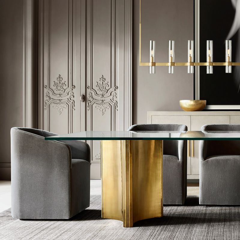 Make a bold statement with the Grandiose Linear Chandelier – an expansive piece that seamlessly blends brass and glass for a captivating lighting centerpiece.
