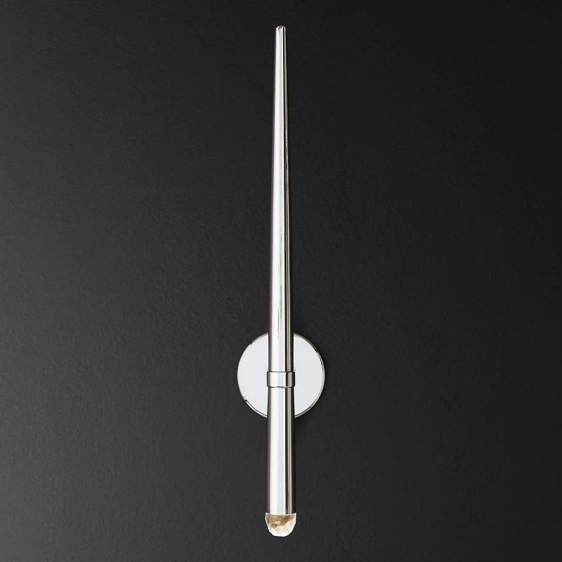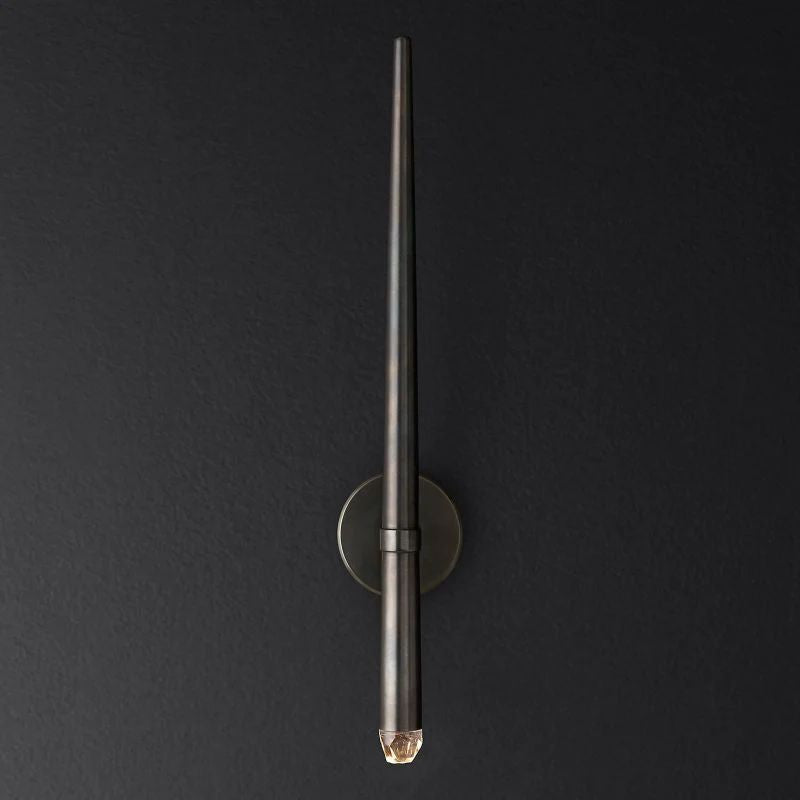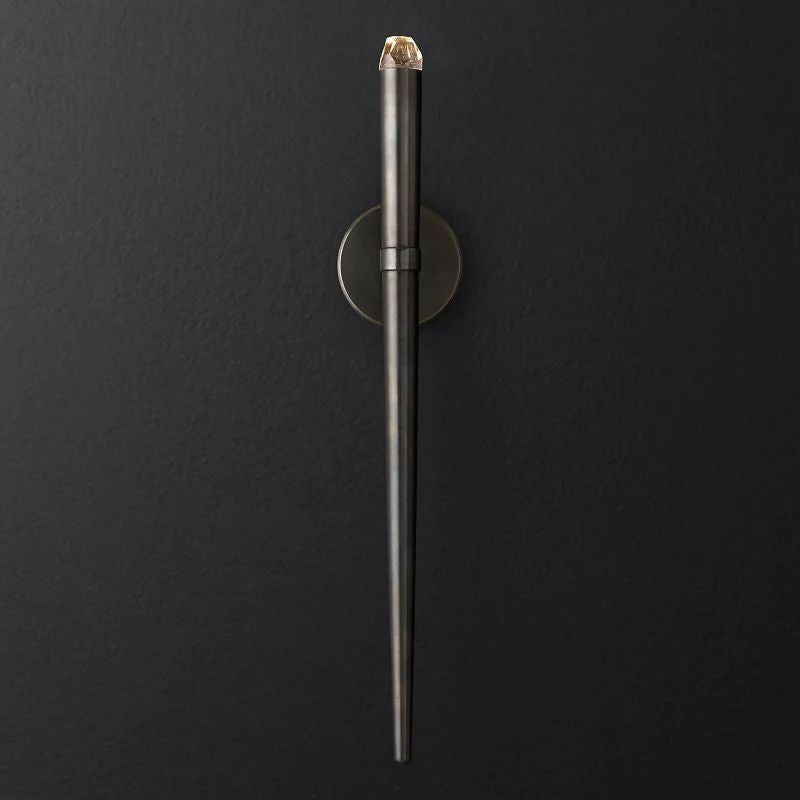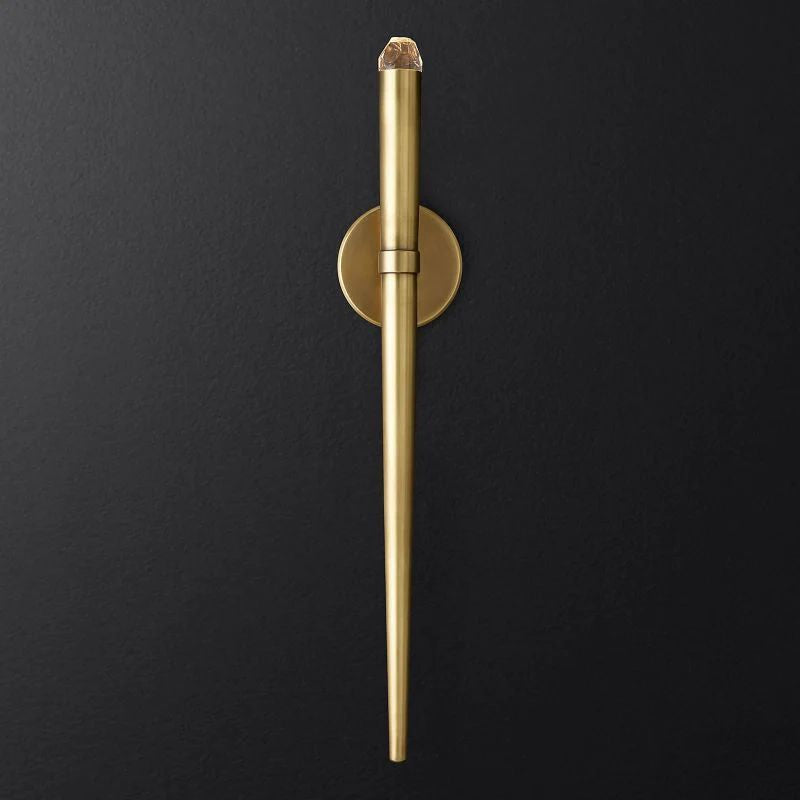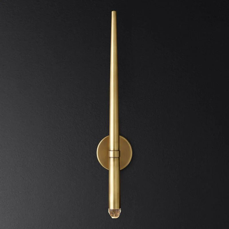 The main feature of the collection is a cluster of solid brass in the form of a suspension on a thin black cord. Recessed LEDs at the top of the faceted glass provide a warm light.